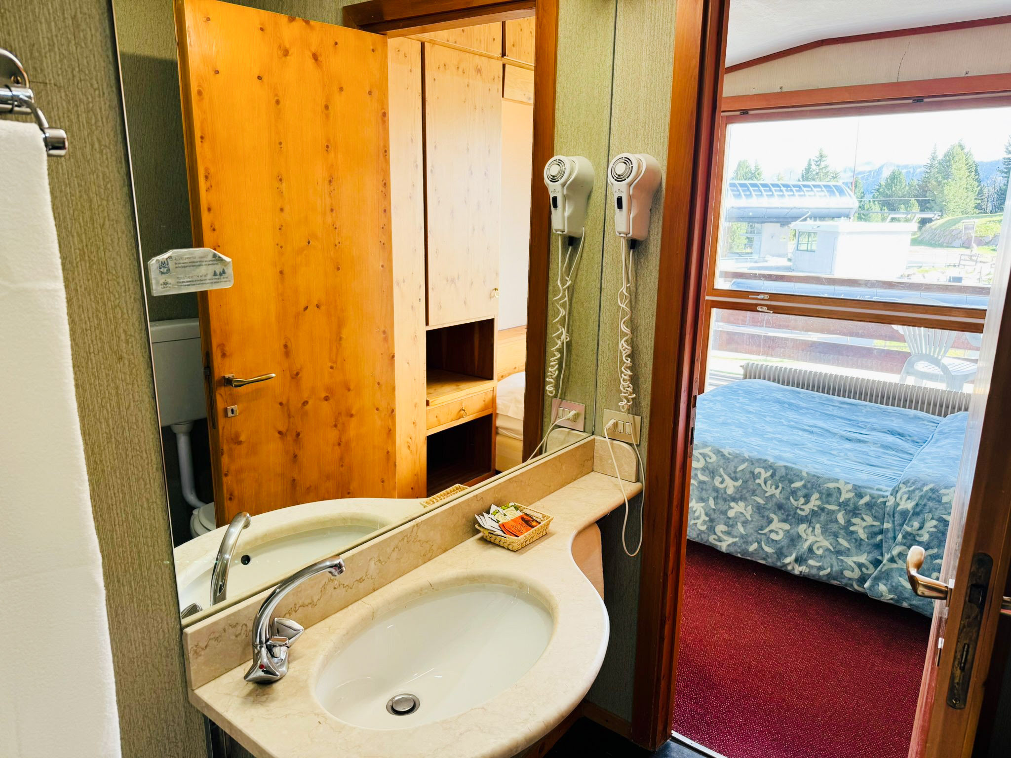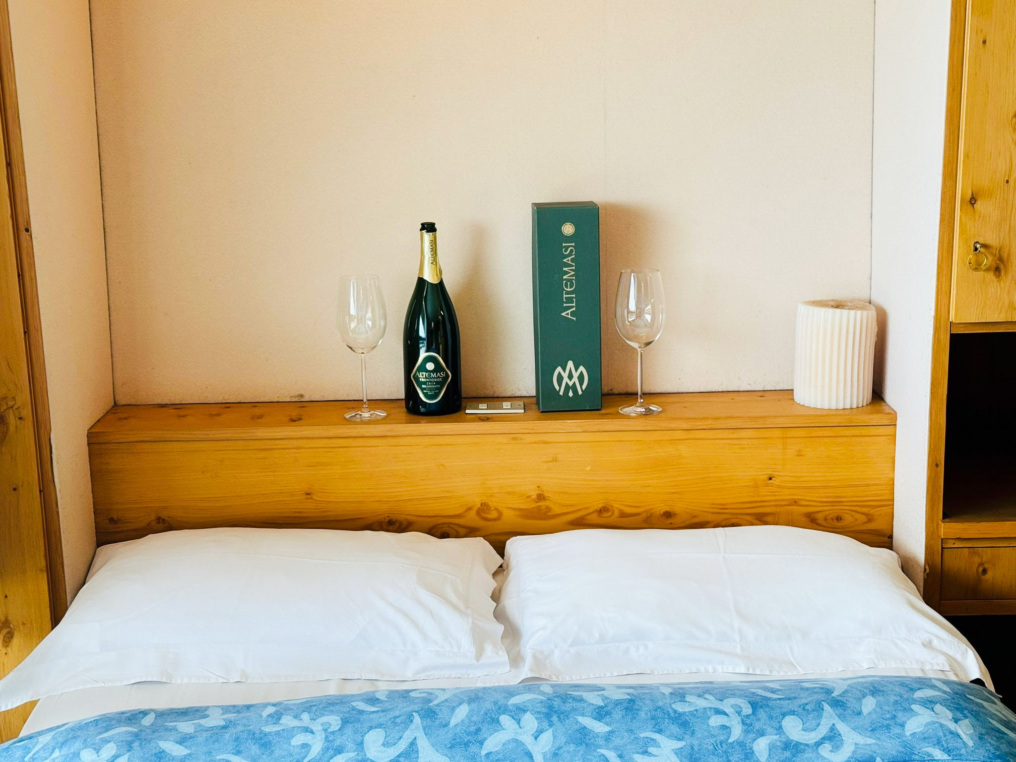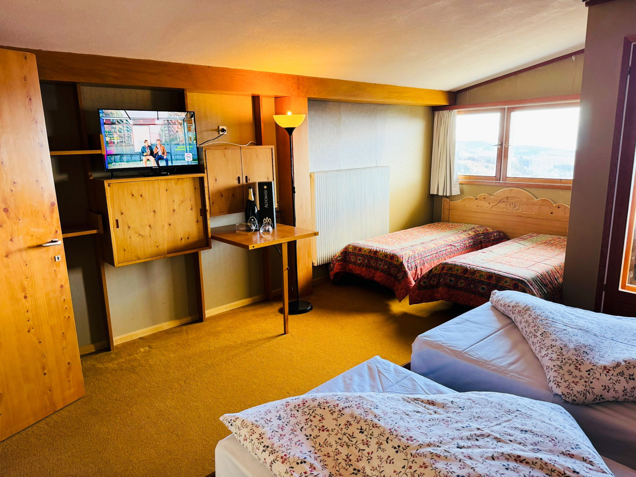 Le nostre camere accoglienti, alcune con balcone panoramico, sono pensate per offrirti il massimo comfort dopo una giornata tra sci e natura. Tutte dispongono di servizi privati, TV-Sat, riscaldamento e asciugacapelli; le camere quadruple, perfette per le famiglie, includono letti a castello.